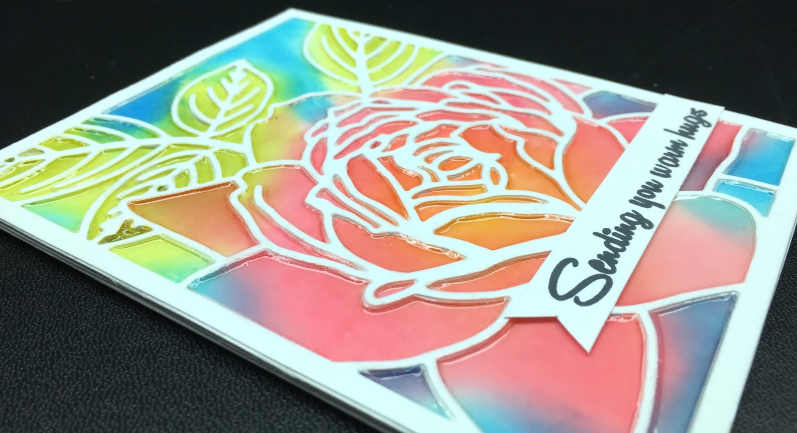 Now, turning the page you can see why it was a mistake to heat emboss on the previous one. The heat on the thin paper brought the embossing ink and gold bleeding through.